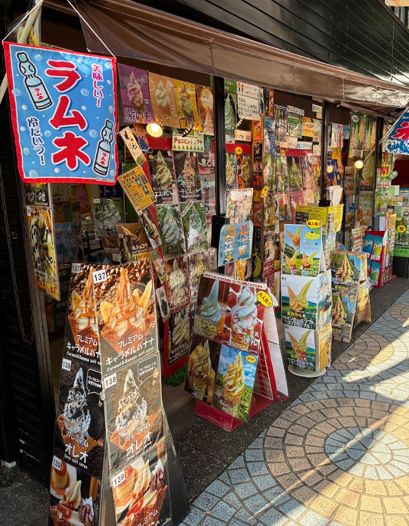 食べ歩きのお店も何件かあります。夏はソフトクリームがとんでもない種類売られていました。